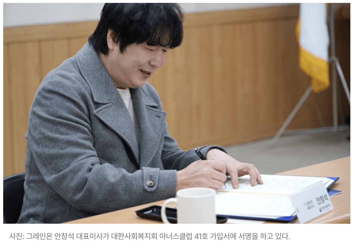 »çȸº¹Áö¹ýÀÎ ´ëÇÑ»çȸº¹Áöȸ(ȸÀå À̺À¿ø)´Â 2¿ù 11ÀÏ, °í´ë°î¹° Àü¹®±â¾÷ ±×·¹ÀοÂÀÇ ¾Èâ¼® ´ëÇ¥À̻簡 1õ¸¸ ¿øÀ» ±âºÎÇÏ¸ç °í¾× ÈÄ¿øÀÚ ¸ðÀÓ